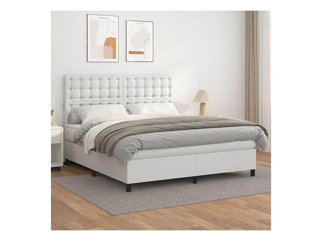 Sommier à lattes de lit avec matelas Blanc 180x200 Similicuir