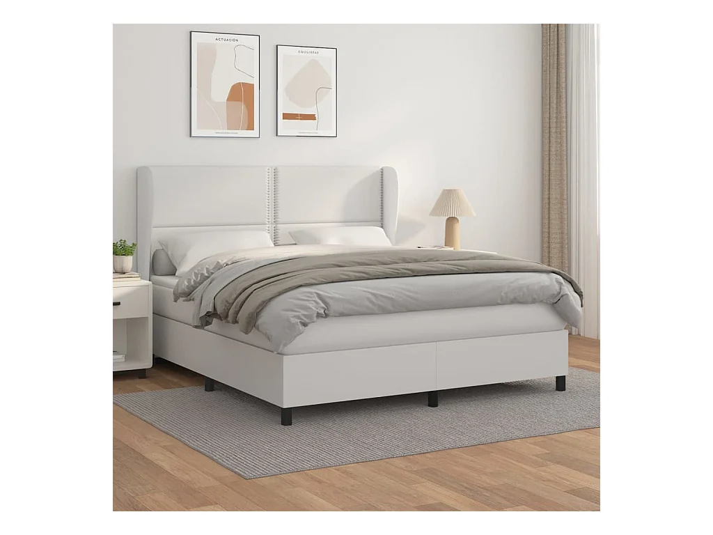 Sommier à lattes de lit avec matelas Blanc 180x200 Similicuir