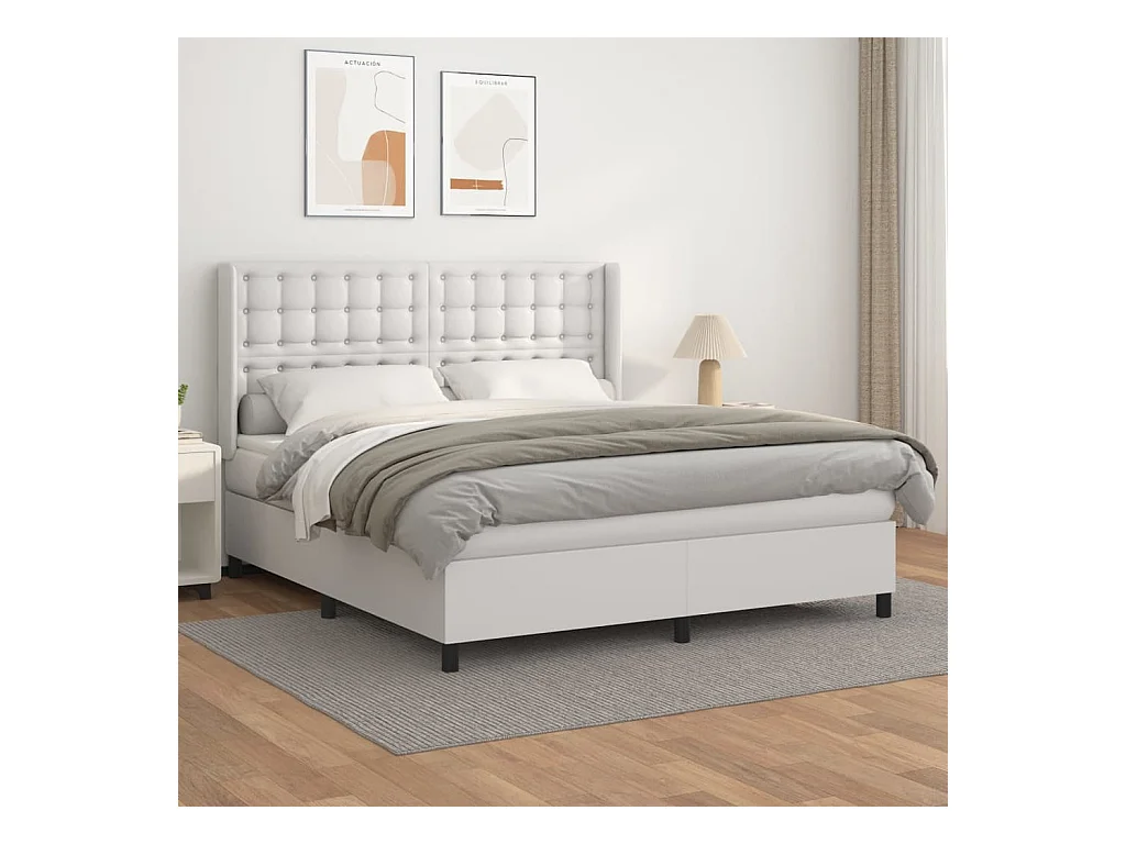 Sommier à lattes de lit avec matelas Blanc 180x200 Similicuir