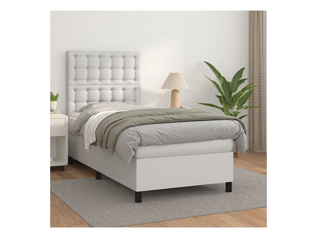 Sommier à lattes de lit avec matelas Blanc 90x200 Similicuir