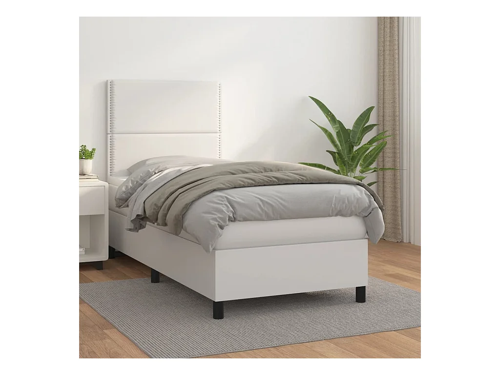 Sommier à lattes de lit avec matelas Blanc 90x200 Similicuir