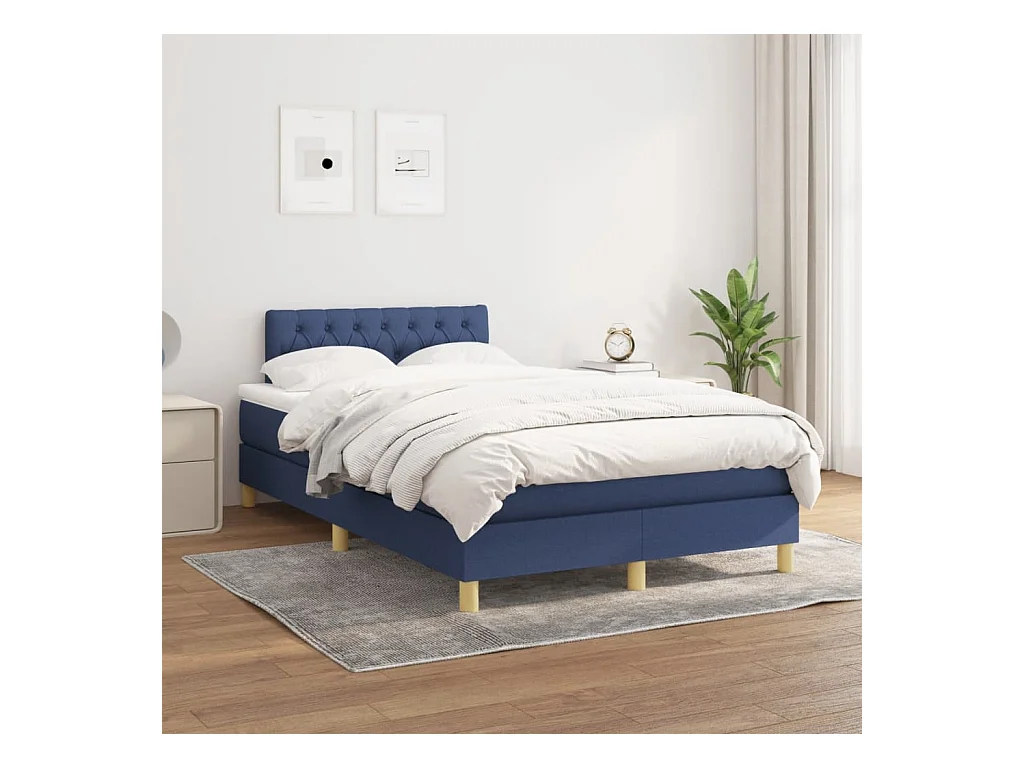 Sommier à lattes de lit avec matelas bleu 120x190 cm tissu
