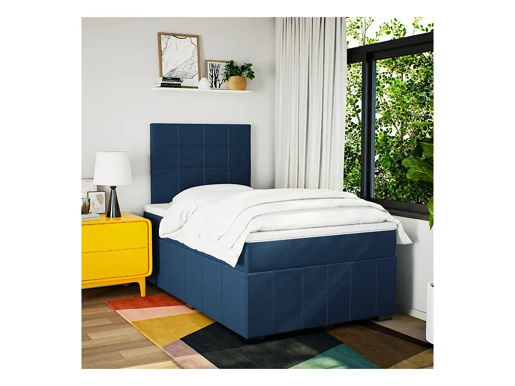 Sommier à lattes de lit avec matelas bleu 120x190 cm tissu