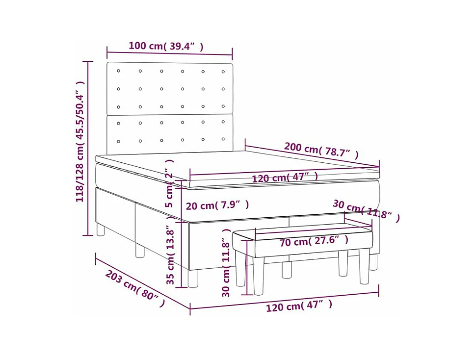 Sommier à lattes de lit avec matelas Bleu 120x200 Tissu