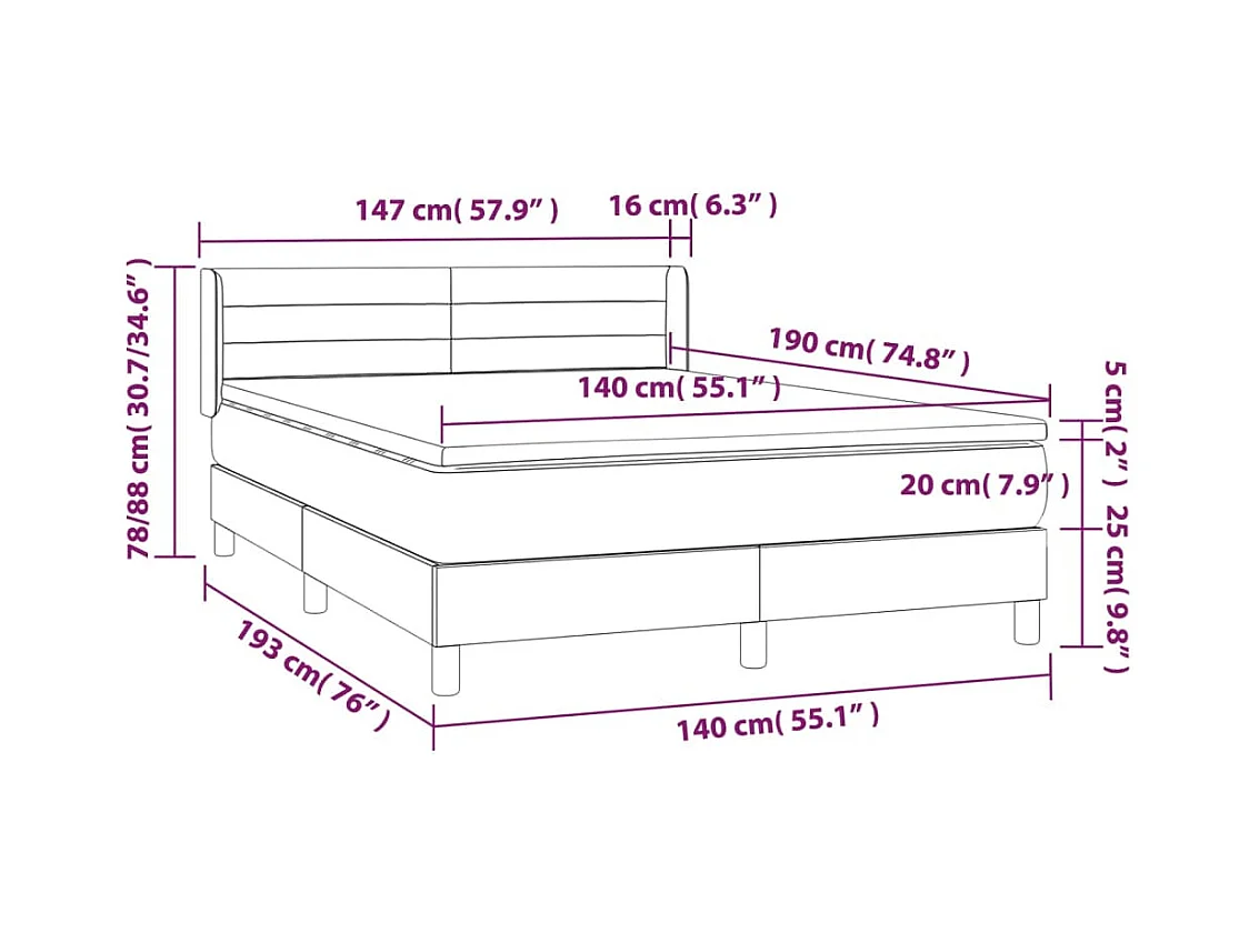 Sommier à lattes de lit avec matelas Bleu 140x190 Tissu