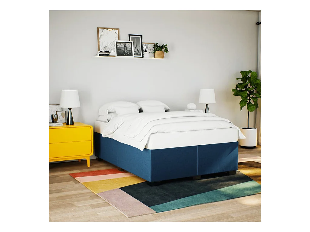 Sommier à lattes de lit avec matelas Bleu 140x200 cm Tissu
