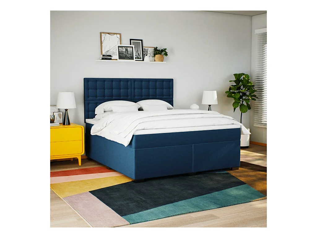 Sommier à lattes de lit avec matelas Bleu 180x200 cm Tissu