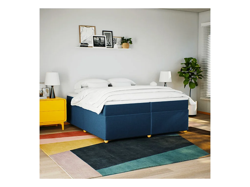 Sommier à lattes de lit avec matelas Bleu 200x200 cm Tissu