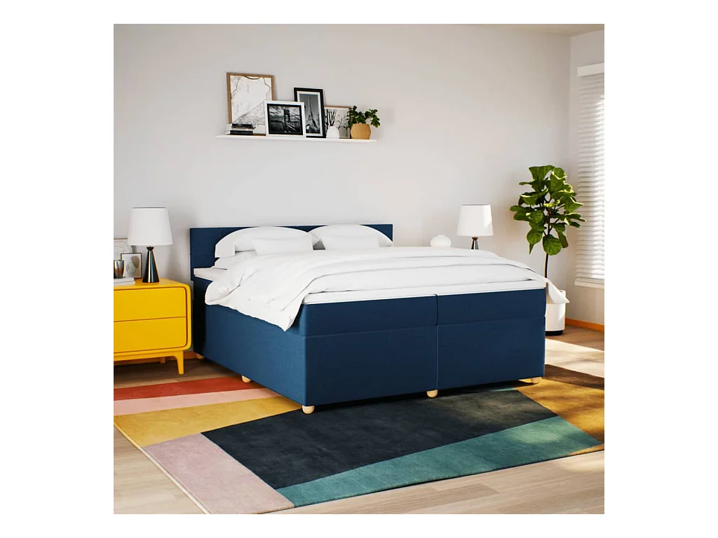 Sommier à lattes de lit avec matelas Bleu 200x200 cm Tissu