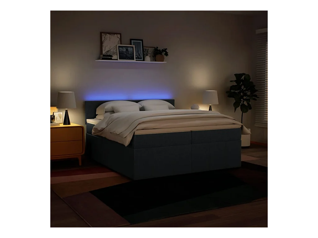 Sommier à lattes de lit avec matelas Bleu 200x200 cm Tissu