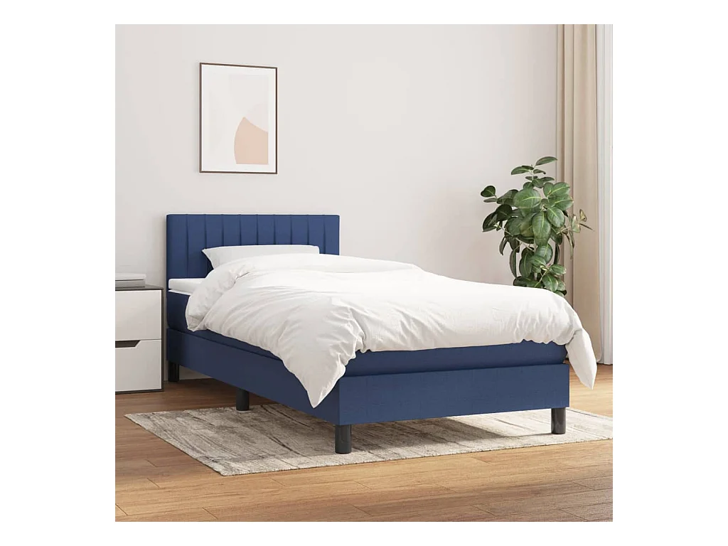Sommier à lattes de lit avec matelas Bleu 90x200 cm Tissu