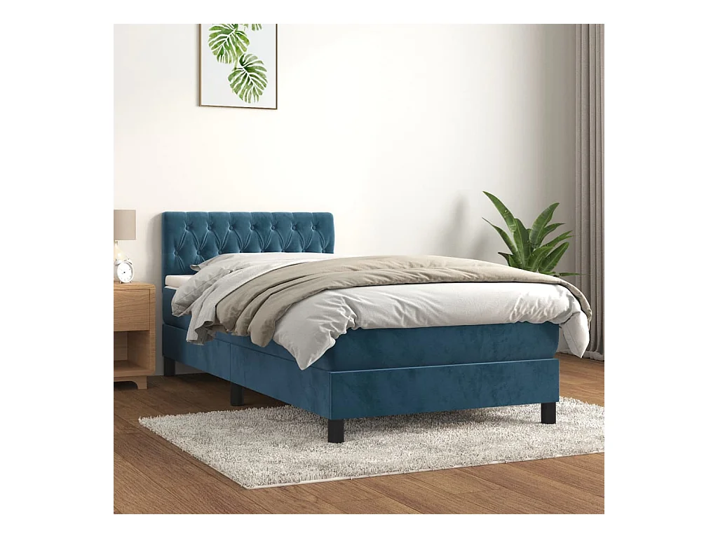 Sommier à lattes de lit avec matelas Bleu foncé 100x200