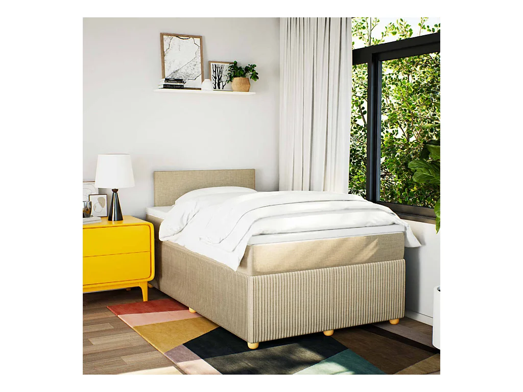 Sommier à lattes de lit avec matelas crème 120x190 cm tissu