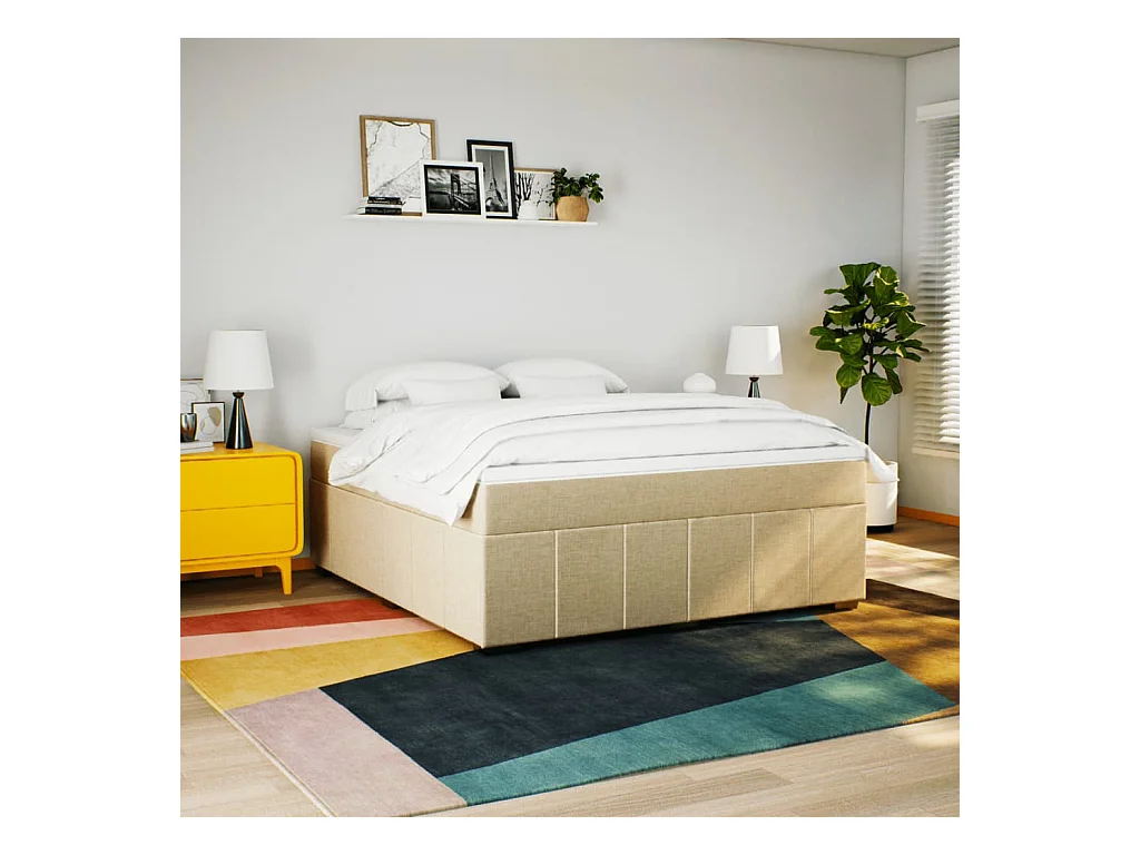 Sommier à lattes de lit avec matelas Crème 180x200 cm Tissu