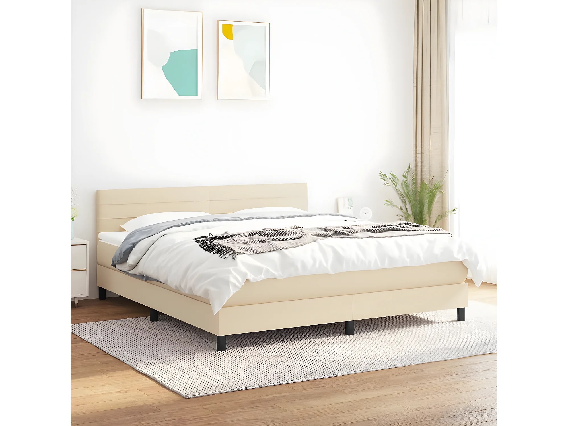 Sommier à lattes de lit avec matelas Crème 180x200 Tissu