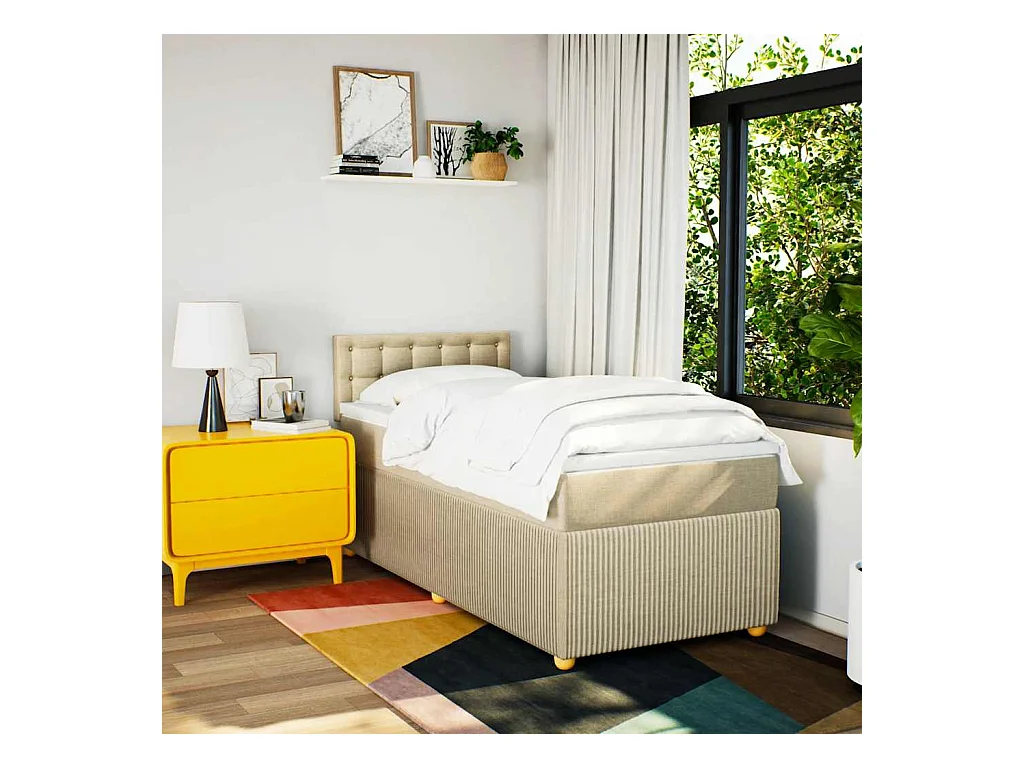 Sommier à lattes de lit avec matelas Crème 90x200 cm Tissu