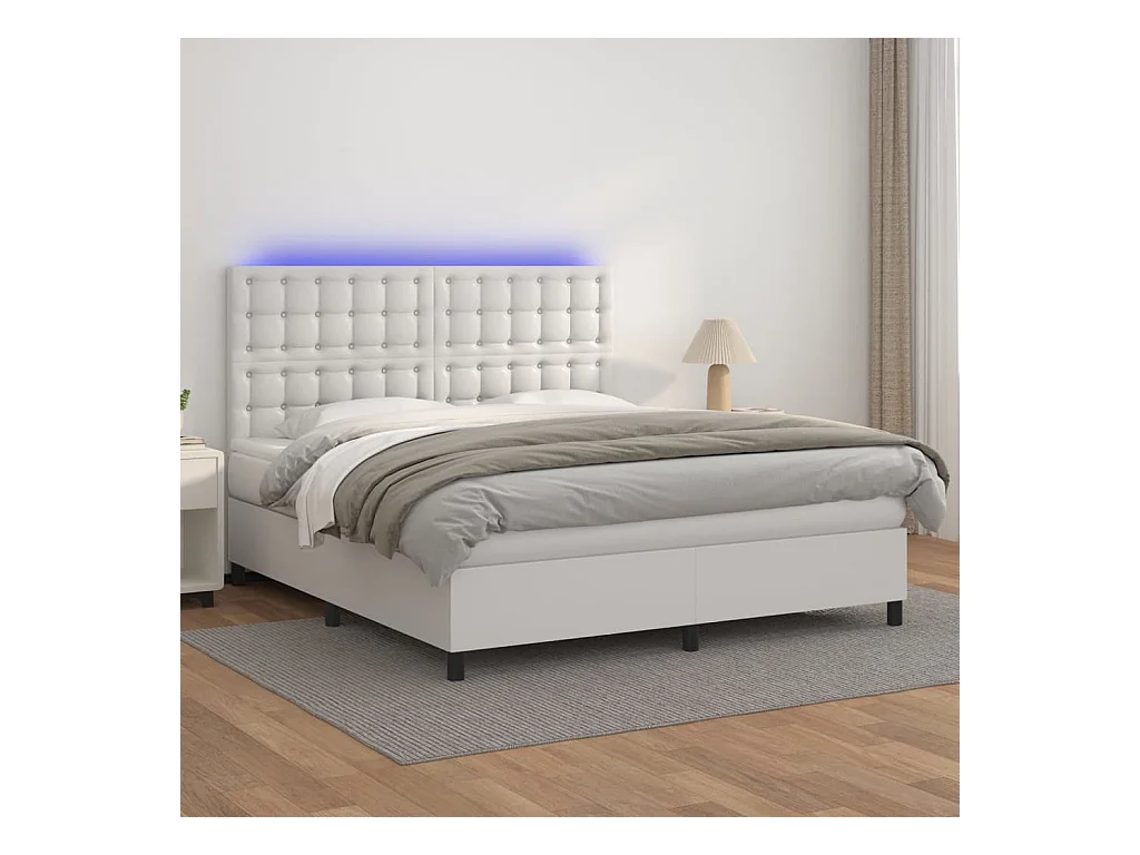 Sommier à lattes de lit avec matelas et LED Blanc 160x200