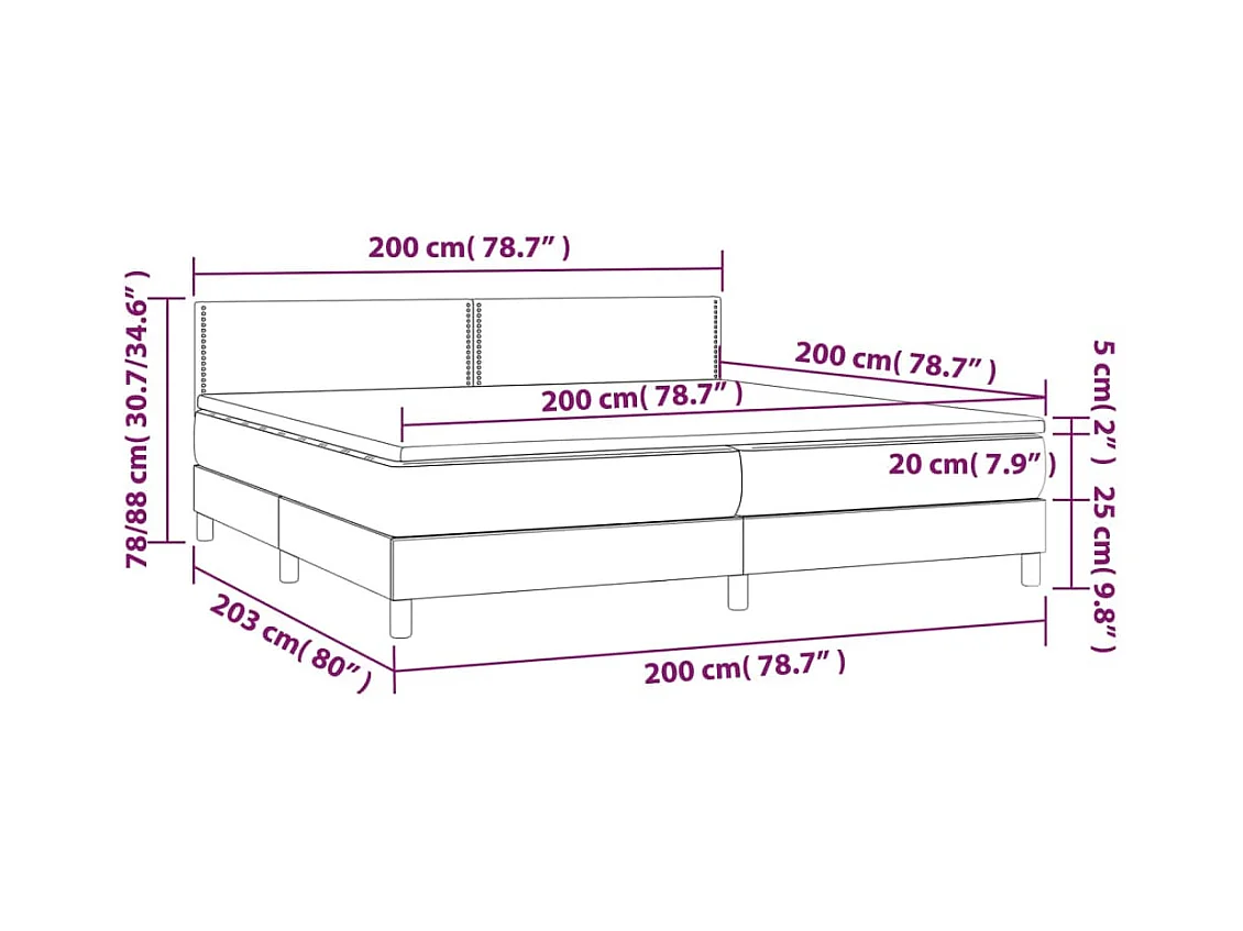 Sommier à lattes de lit avec matelas et LED Blanc 200x200