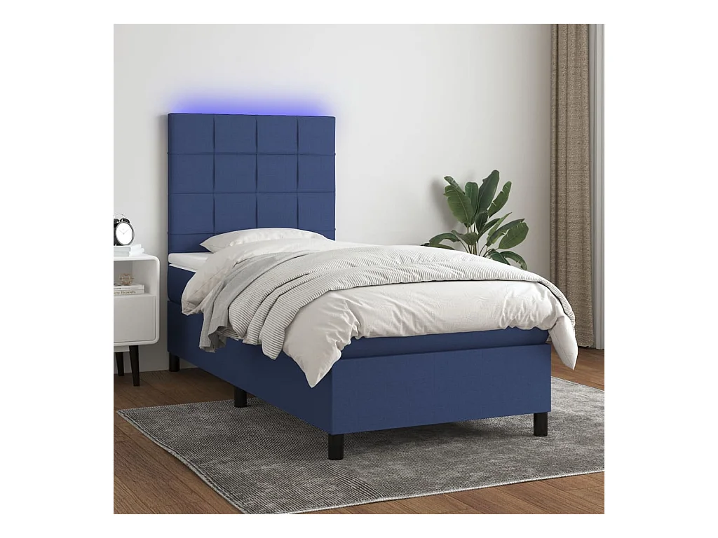 Sommier à lattes de lit avec matelas et LED Bleu 80x200 Tissu