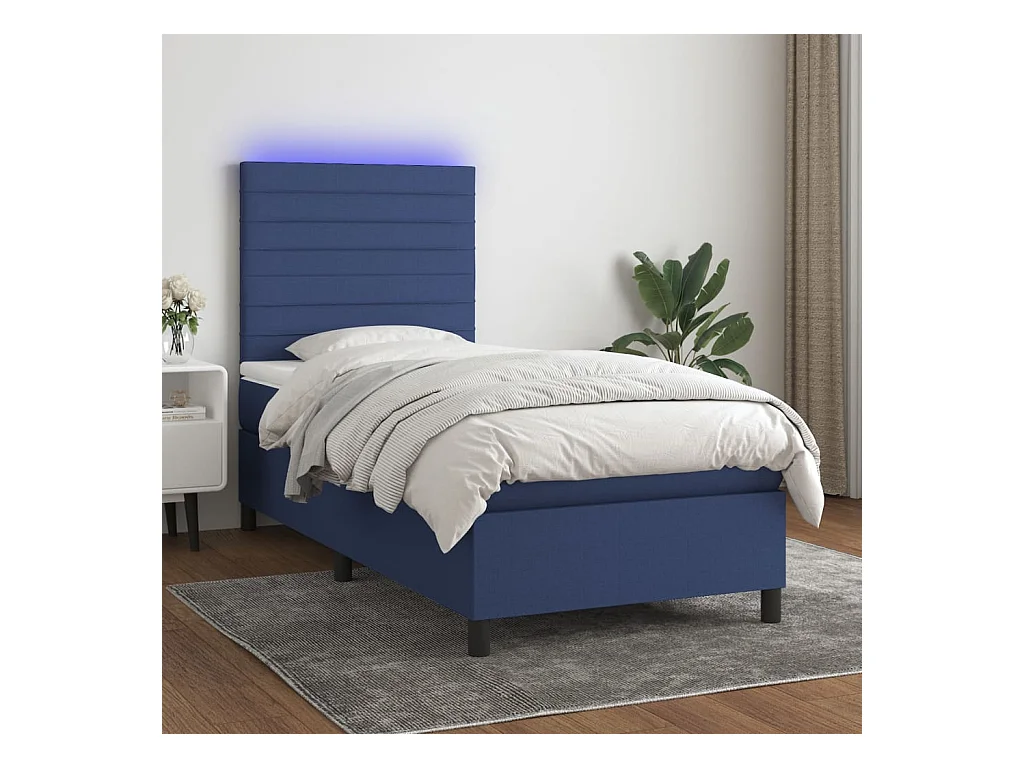Sommier à lattes de lit avec matelas et LED Bleu 80x200 Tissu