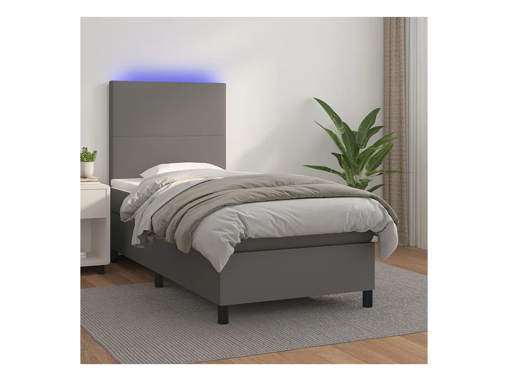Sommier à lattes de lit avec matelas et LED Gris 100x200