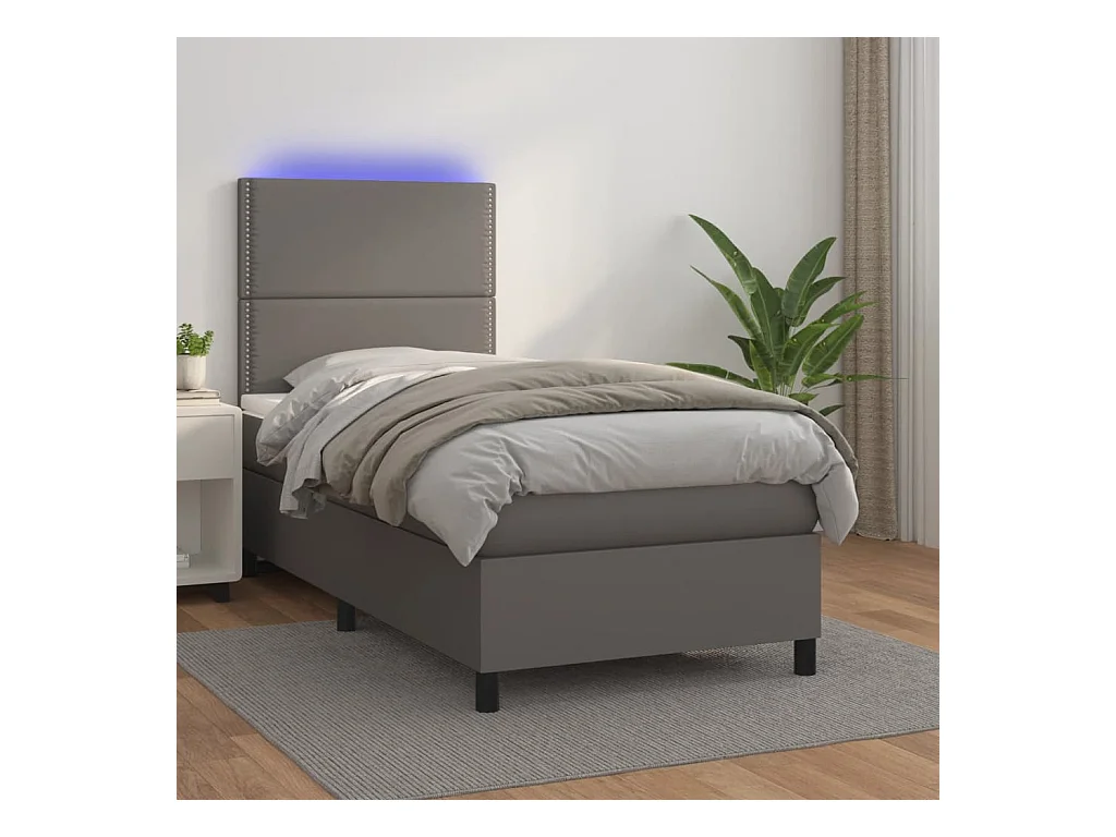 Sommier à lattes de lit avec matelas et LED Gris 90x200