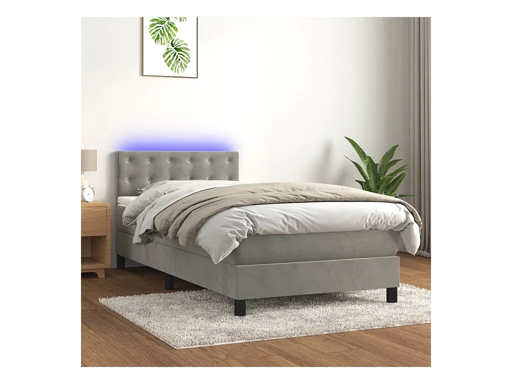 Sommier à lattes de lit avec matelas et LED Gris clair 80x200