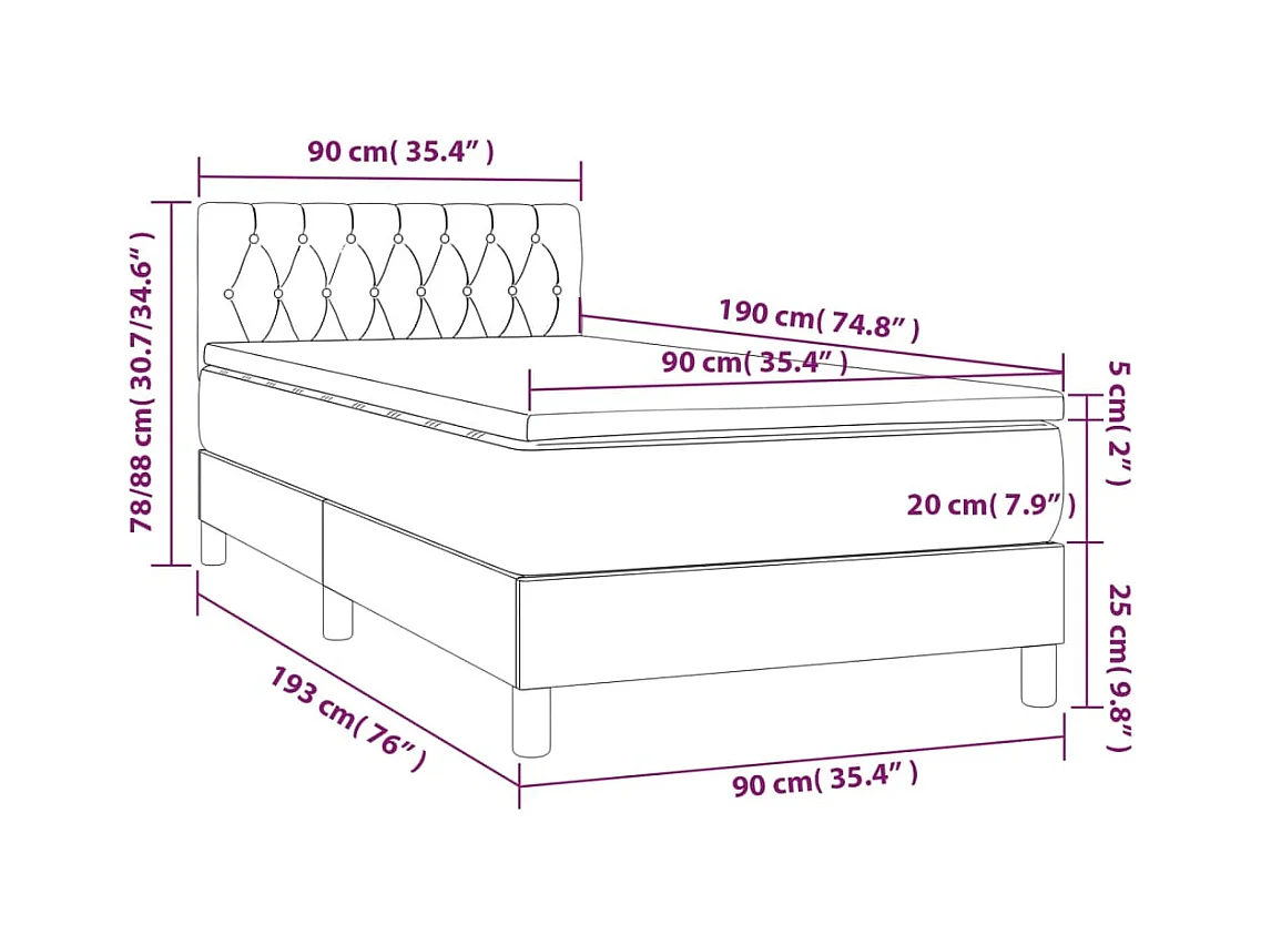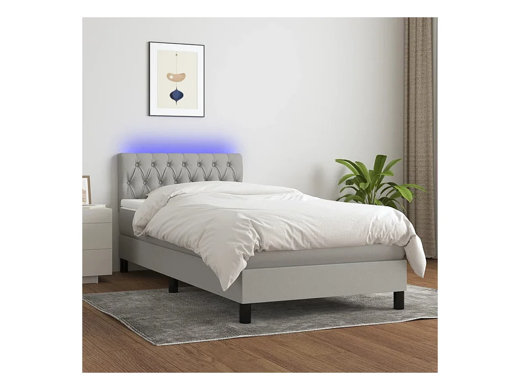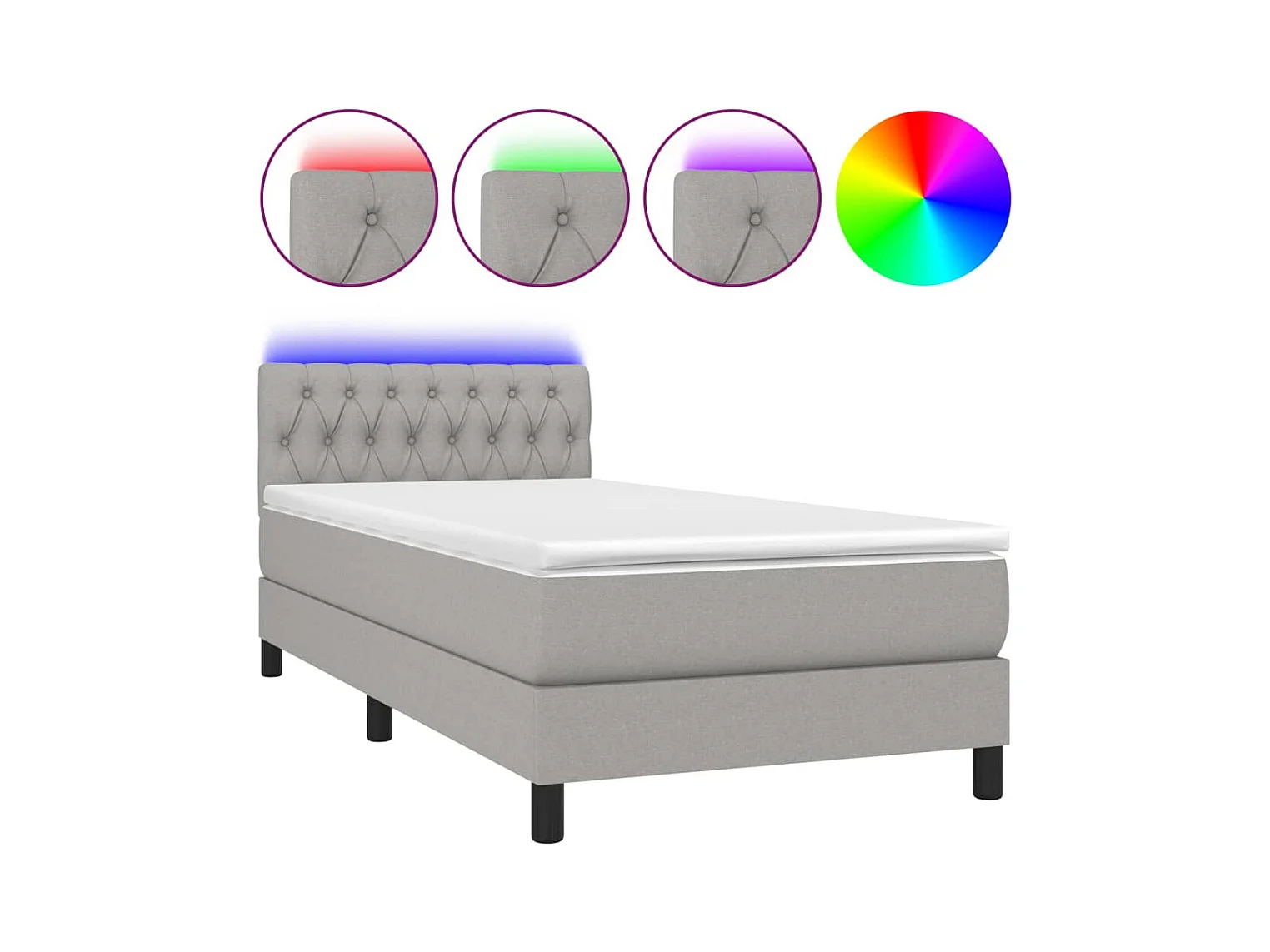 Sommier à lattes de lit avec matelas et LED Gris clair 90x190