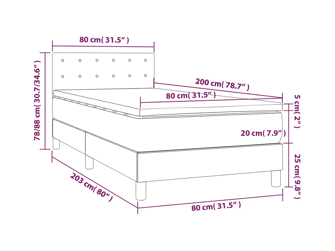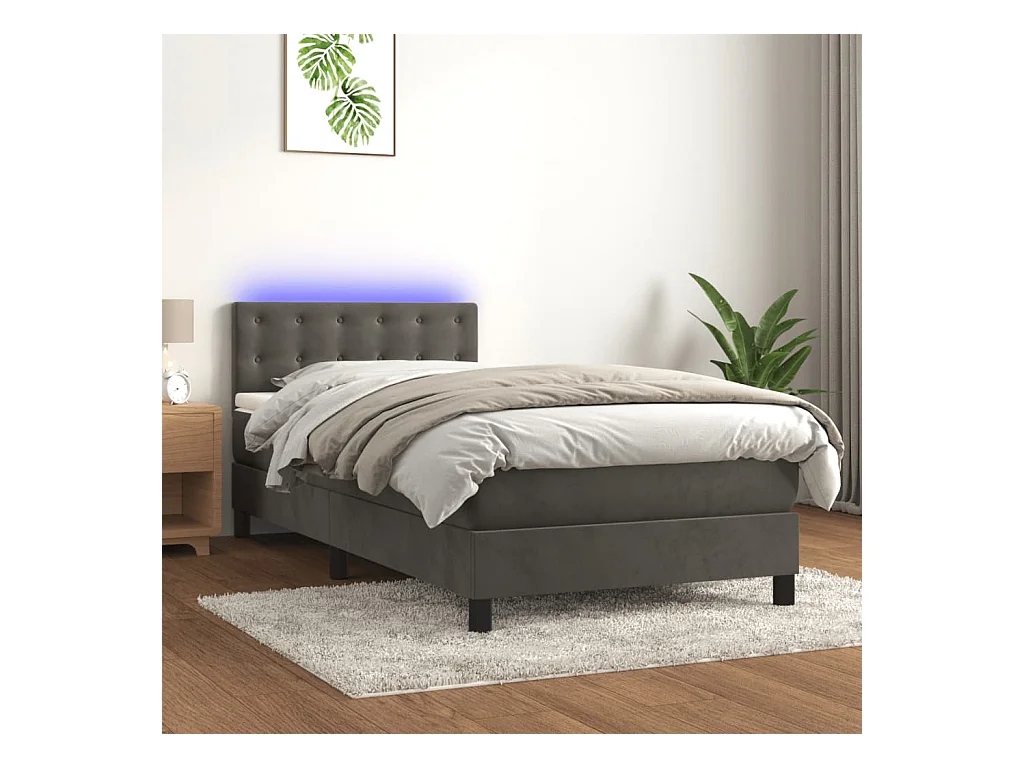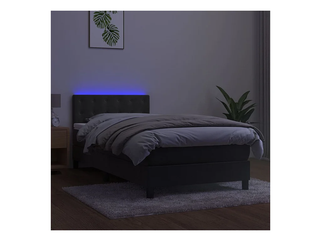 Sommier à lattes de lit avec matelas et LED Gris foncé 80x200