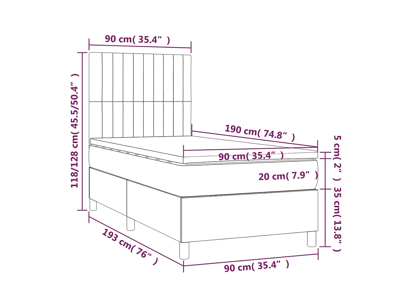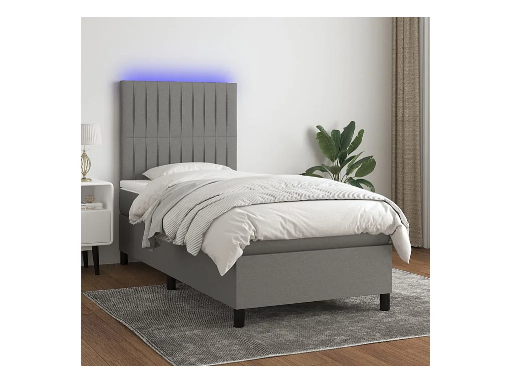 Sommier à lattes de lit avec matelas et LED Gris foncé 90x190