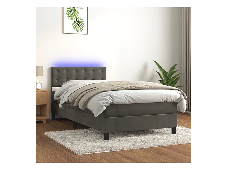 Sommier à lattes de lit avec matelas et LED Gris foncé 90x200