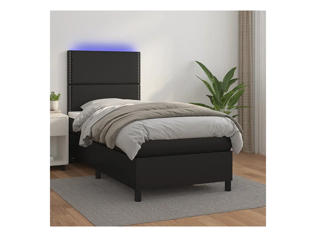 Sommier à lattes de lit avec matelas et LED Noir 100x200