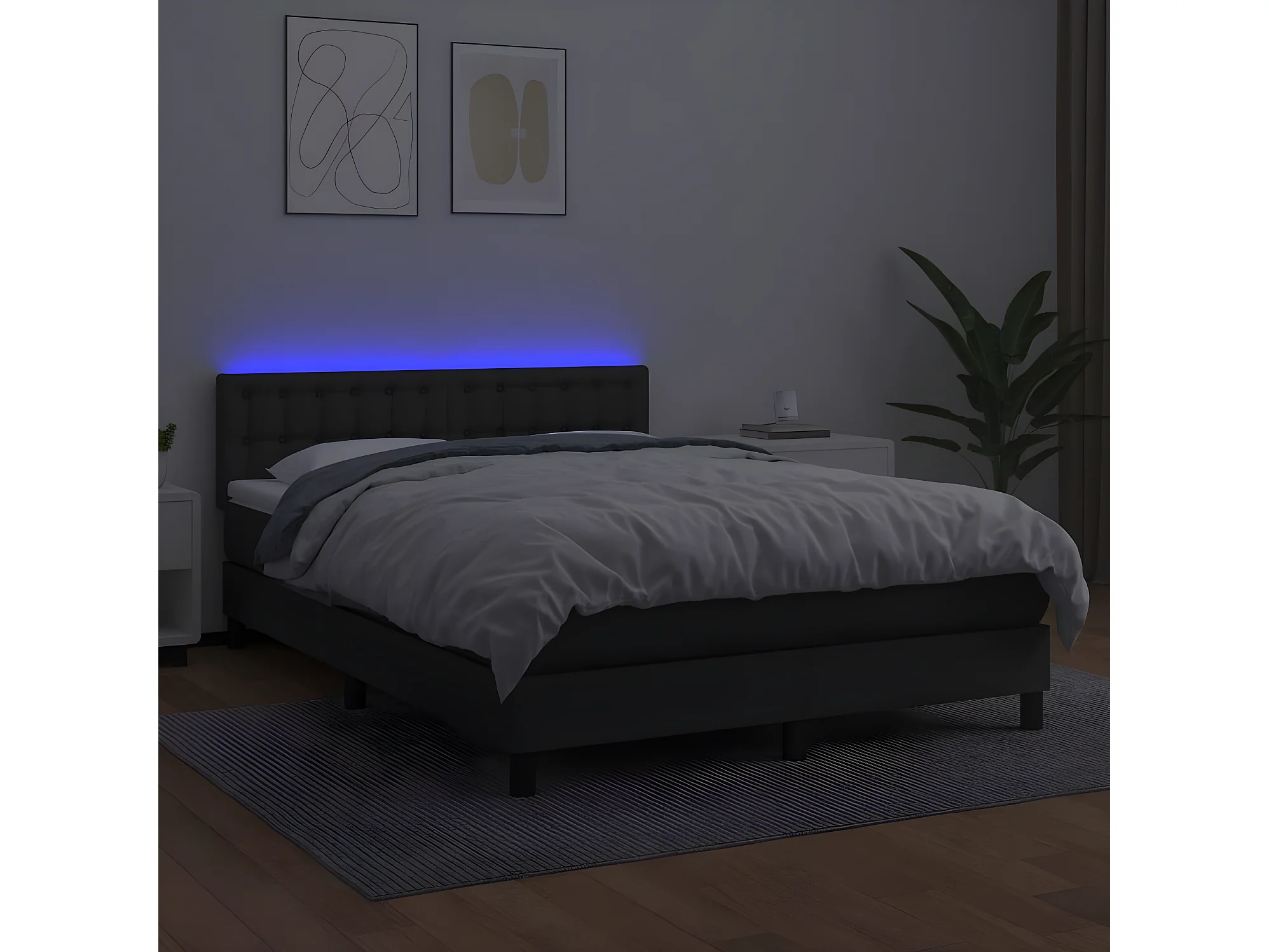 Sommier à lattes de lit avec matelas et LED Noir 140x190