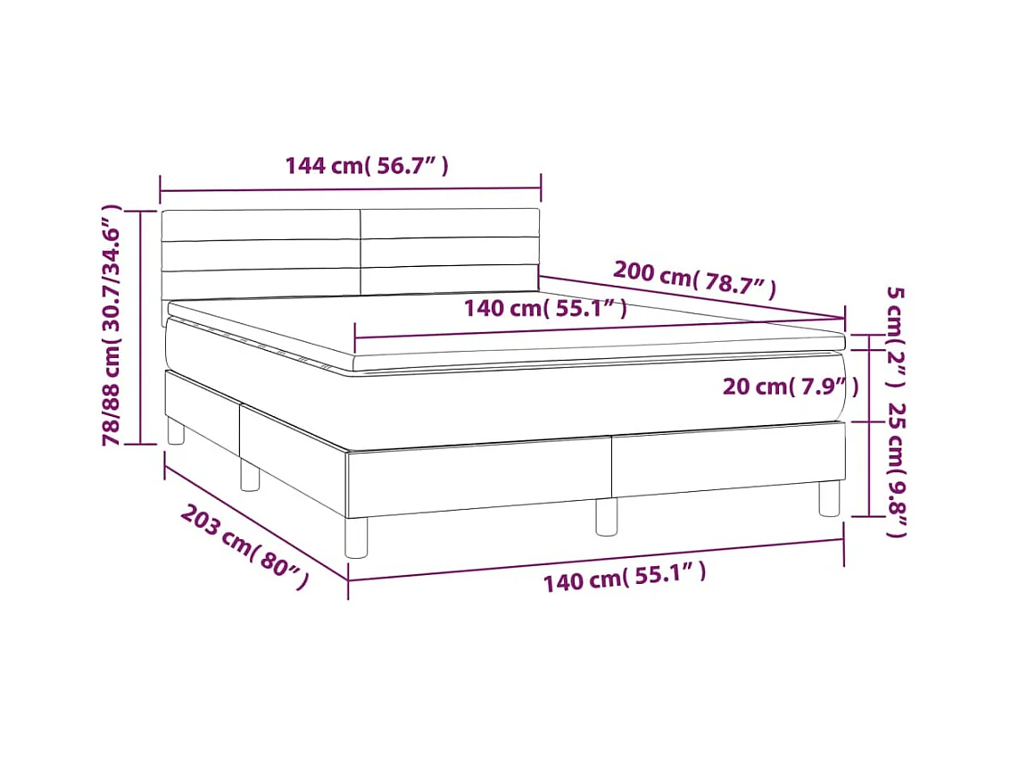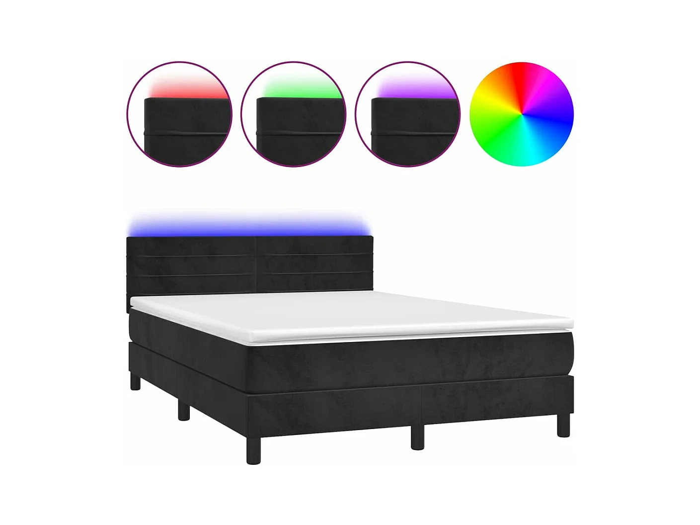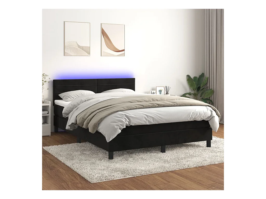 Sommier à lattes de lit avec matelas et LED Noir 140x200