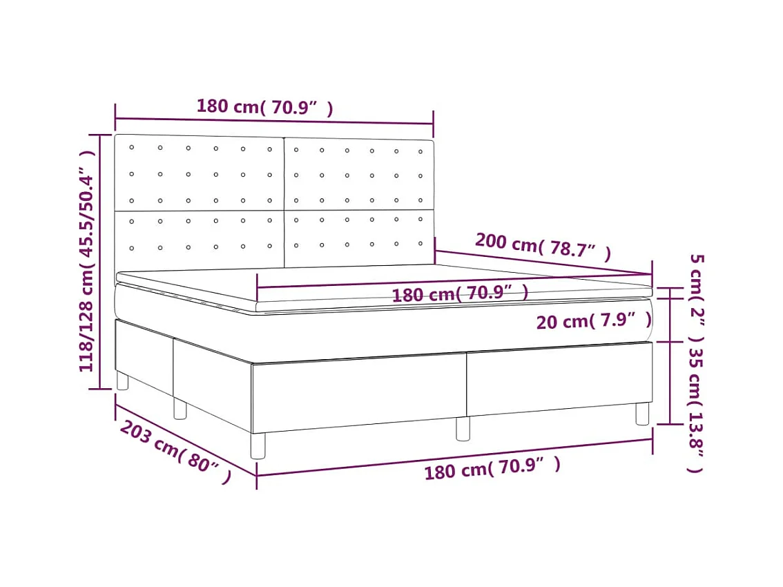 Sommier à lattes de lit avec matelas et LED Noir 180x200