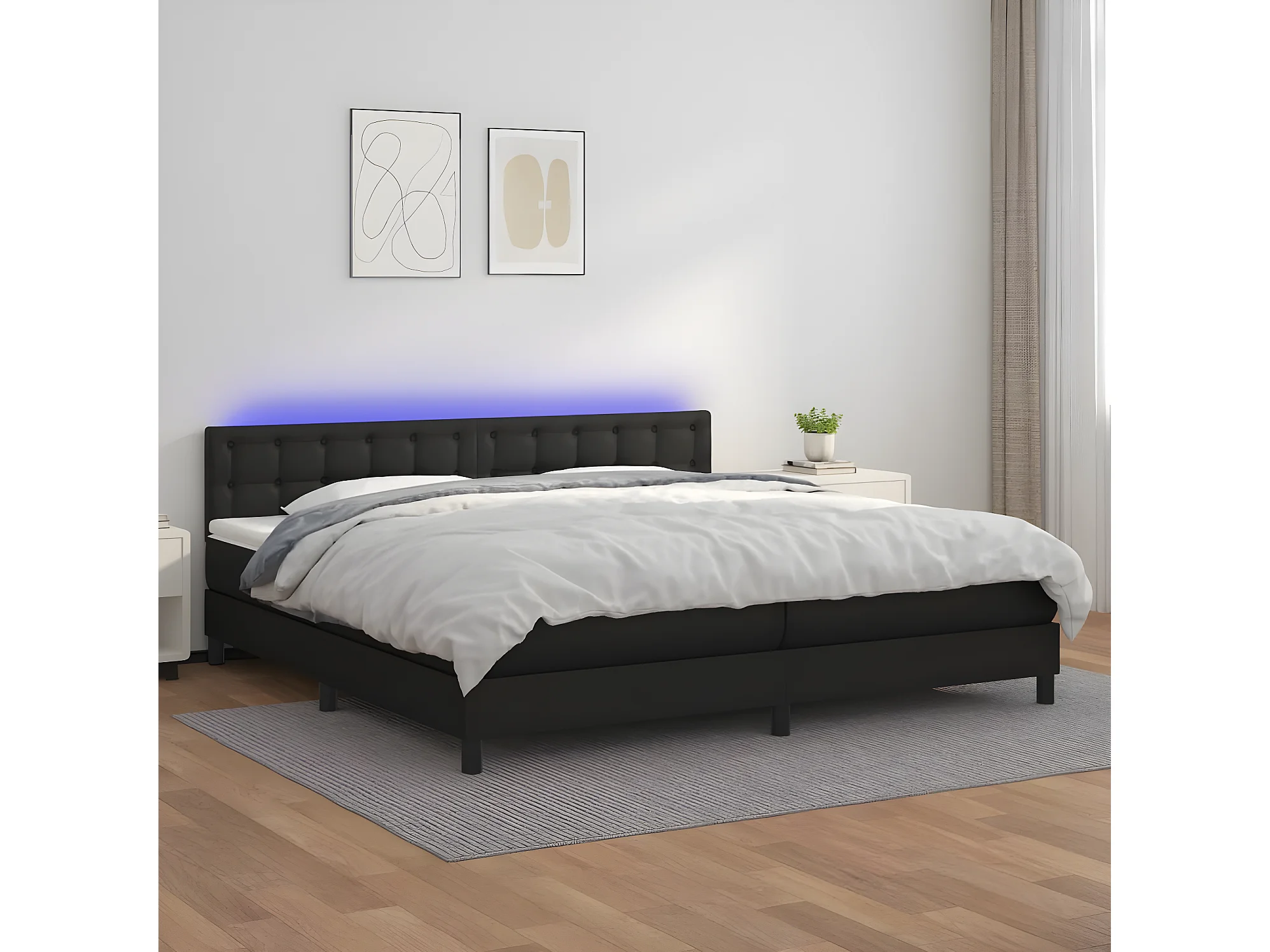 Sommier à lattes de lit avec matelas et LED Noir 200x200