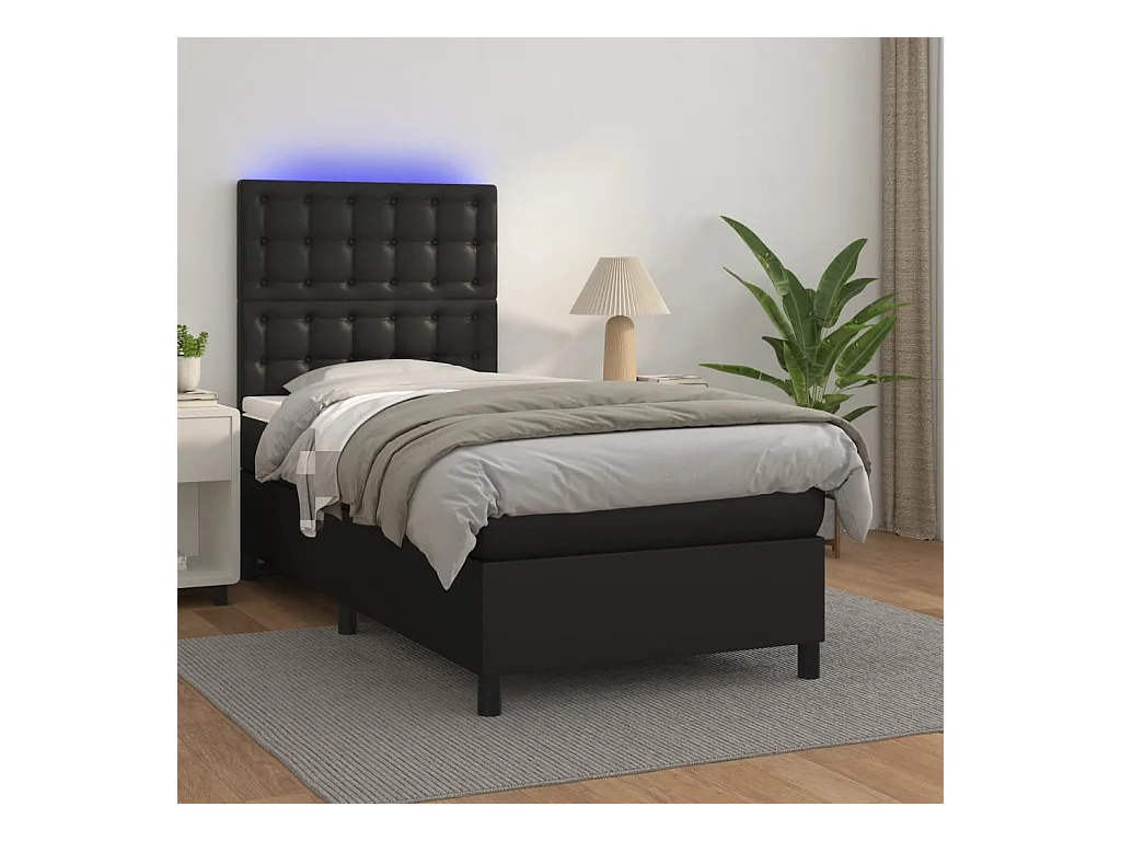 Sommier à lattes de lit avec matelas et LED Noir 90x190