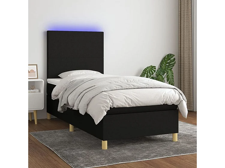 Sommier à lattes de lit avec matelas et LED Noir 90x200 Tissu