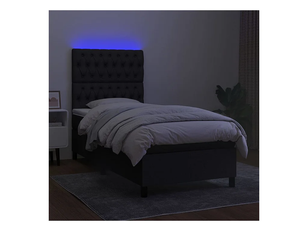 Sommier à lattes de lit avec matelas et LED Noir 90x200 Tissu