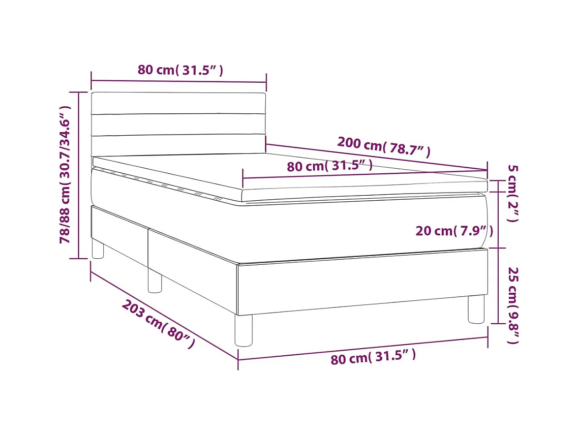 Sommier à lattes de lit avec matelas et LED Rose 80x200