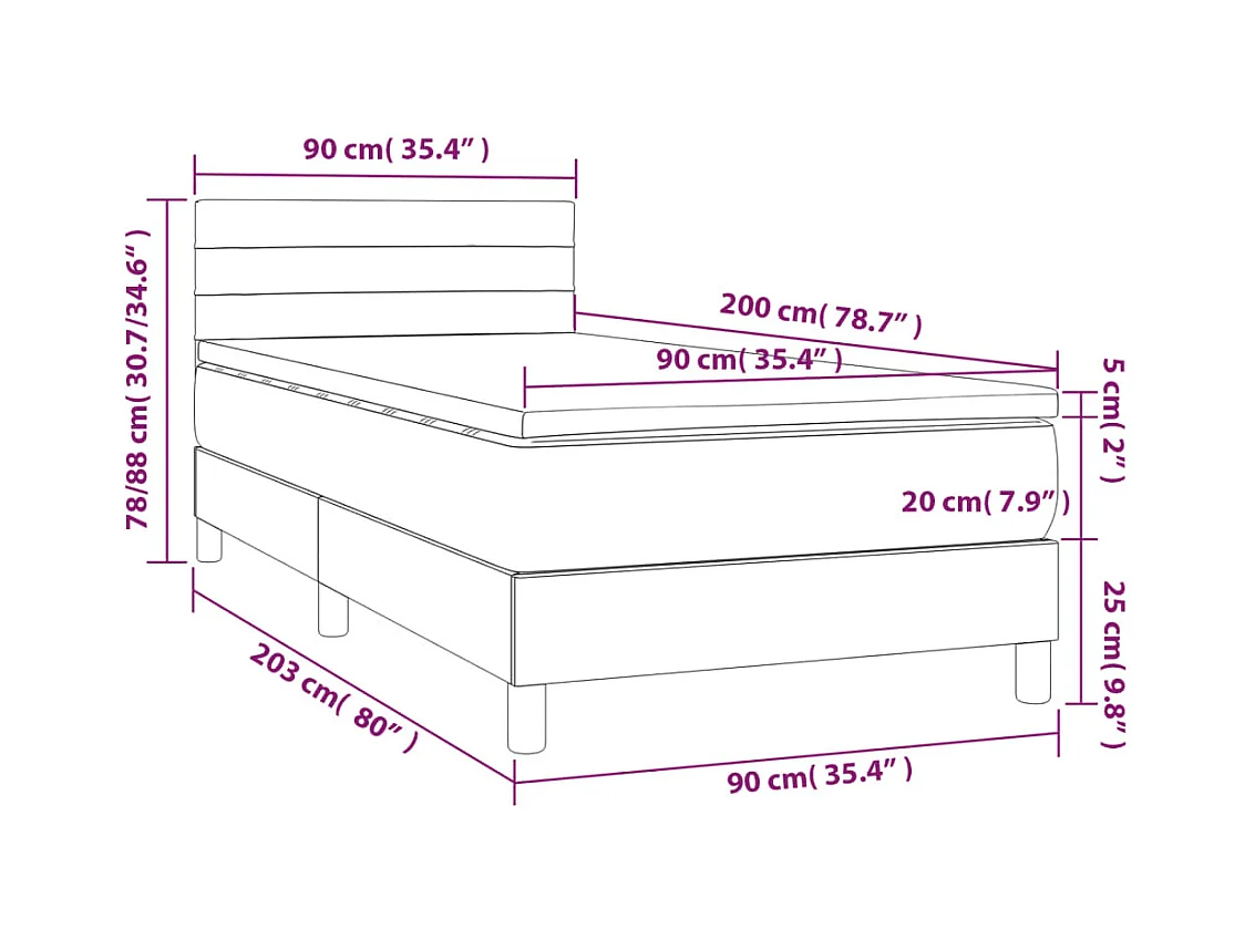 Sommier à lattes de lit avec matelas et LED Rose 90x200