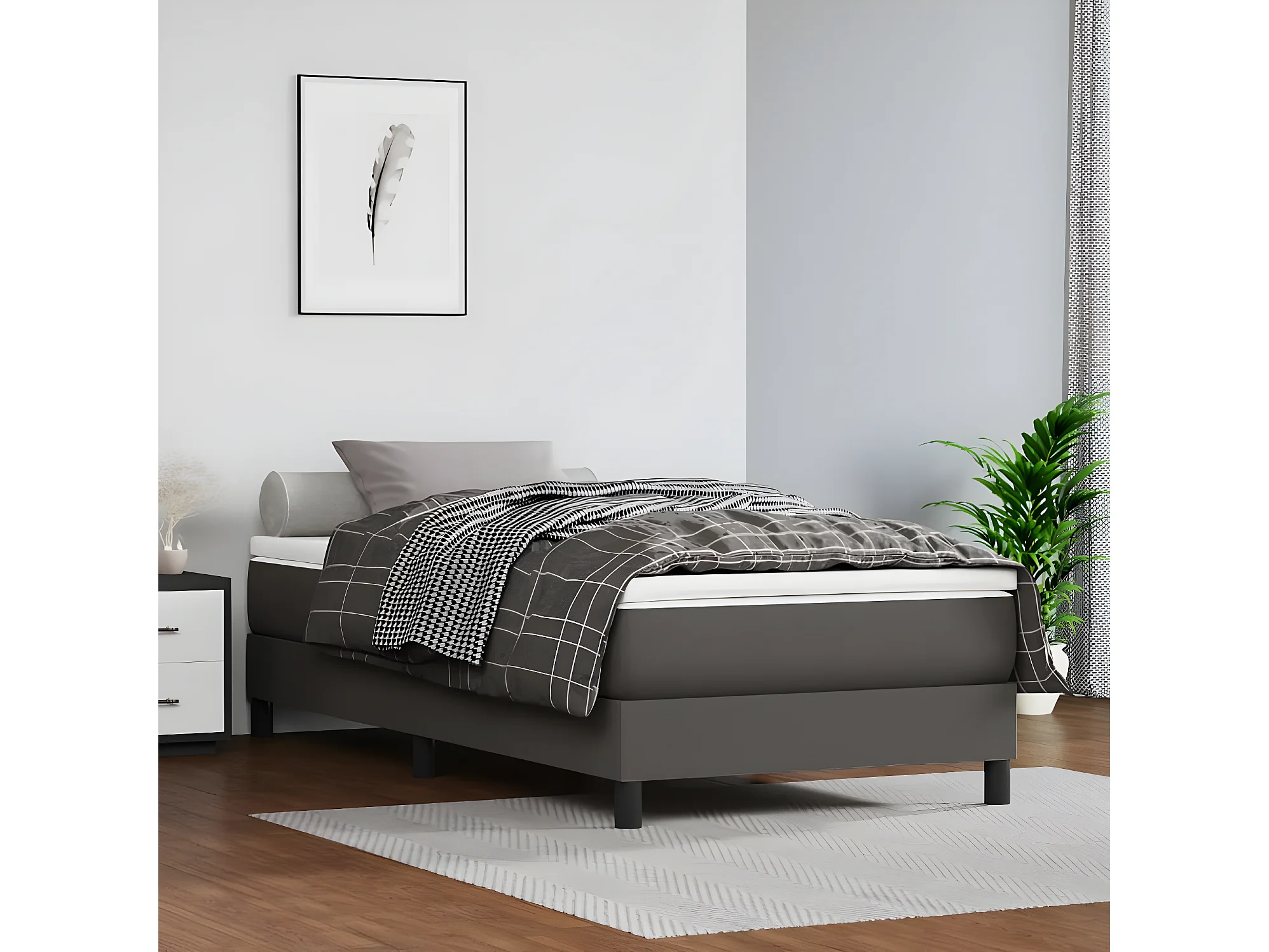 Sommier à lattes de lit avec matelas Gris 100x200 Similicuir