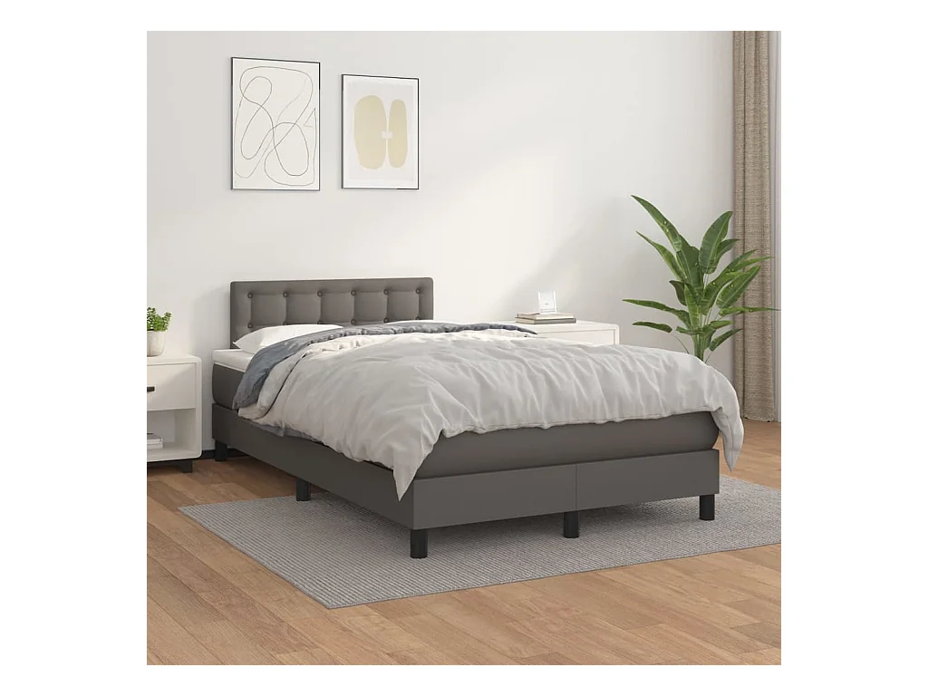 Sommier à lattes de lit avec matelas gris 120x190 similicuir