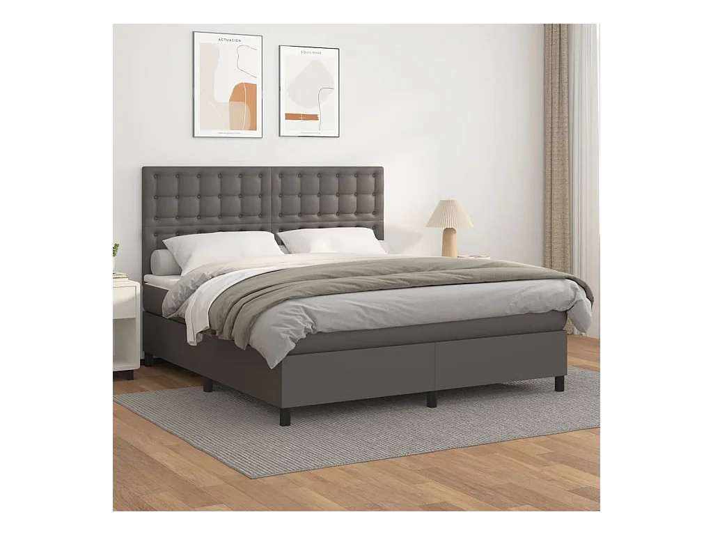 Sommier à lattes de lit avec matelas Gris 180x200 Similicuir