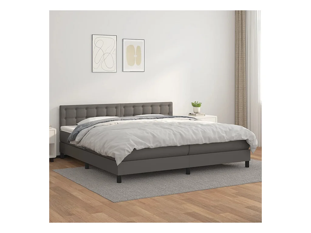 Sommier à lattes de lit avec matelas Gris 200x200 Similicuir