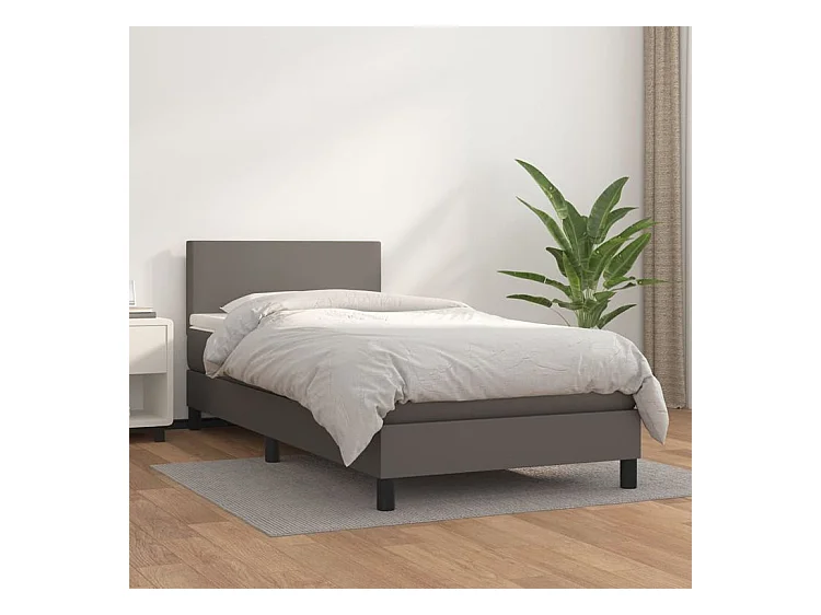 Sommier à lattes de lit avec matelas Gris 90x200 Similicuir