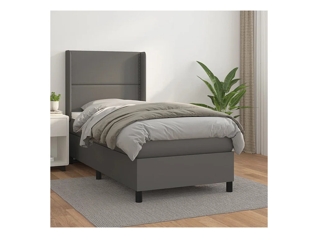 Sommier à lattes de lit avec matelas Gris 90x200 Similicuir