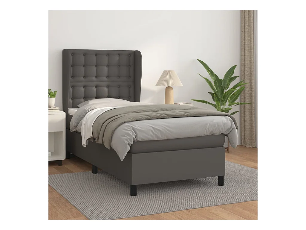 Sommier à lattes de lit avec matelas Gris 90x200 Similicuir