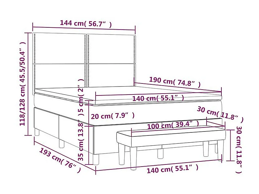 Sommier à lattes de lit avec matelas Gris clair 140x190 Tissu