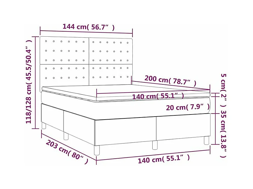 Sommier à lattes de lit avec matelas Gris clair 140x200 Tissu
